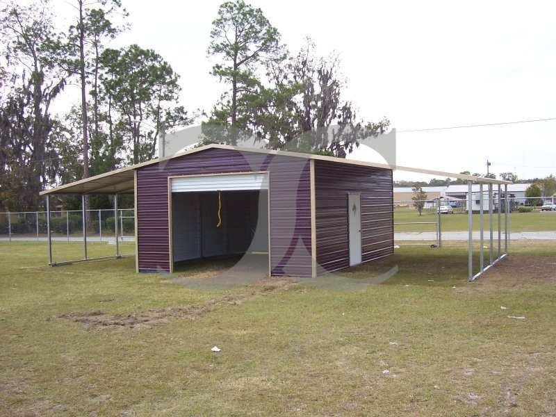 44' Wide x 21' Long x 10' High Enclosed Metal Barn with Lean-tos and Boxed Eave Roof System (Better).